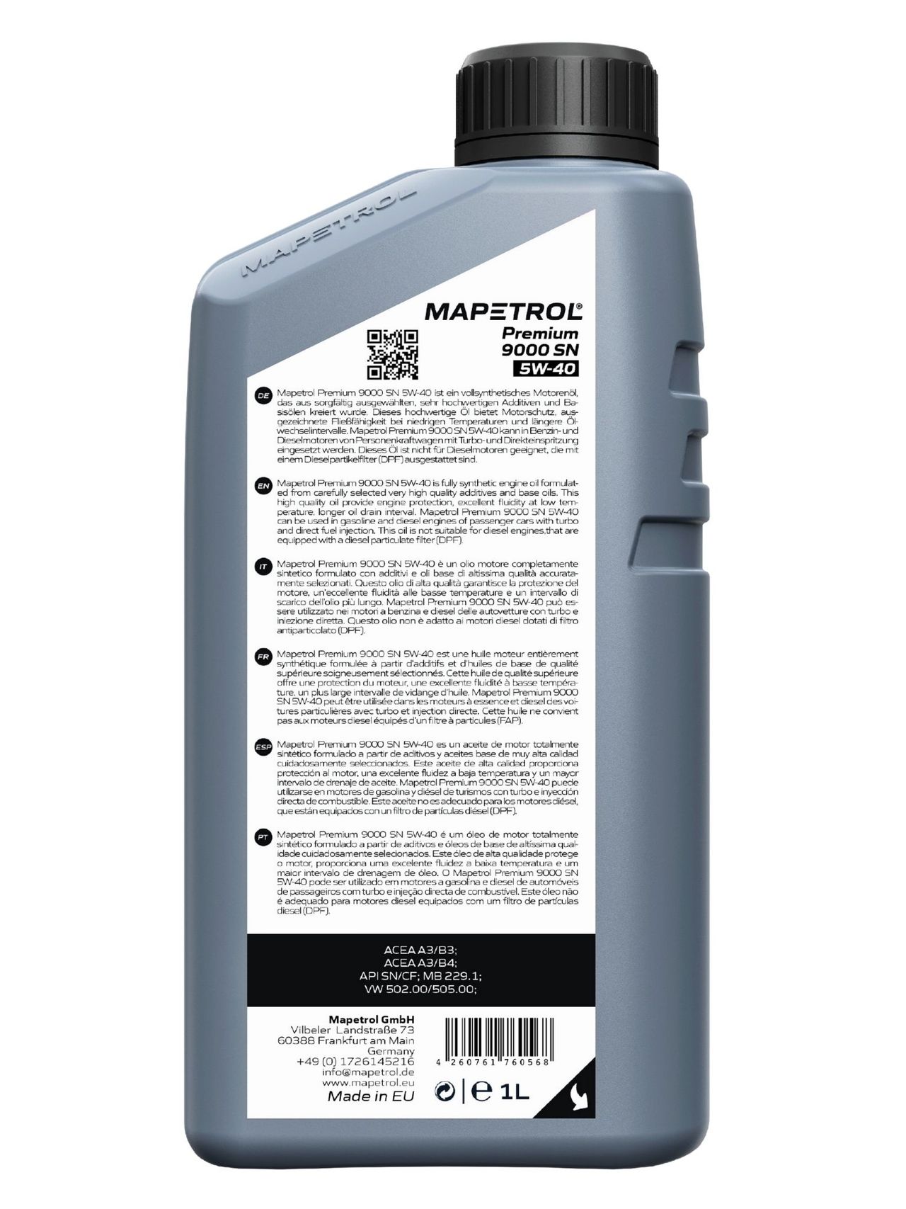 Produktinformationen "Mapetrol Premium 9000 SN 5W-40 1 Liter"