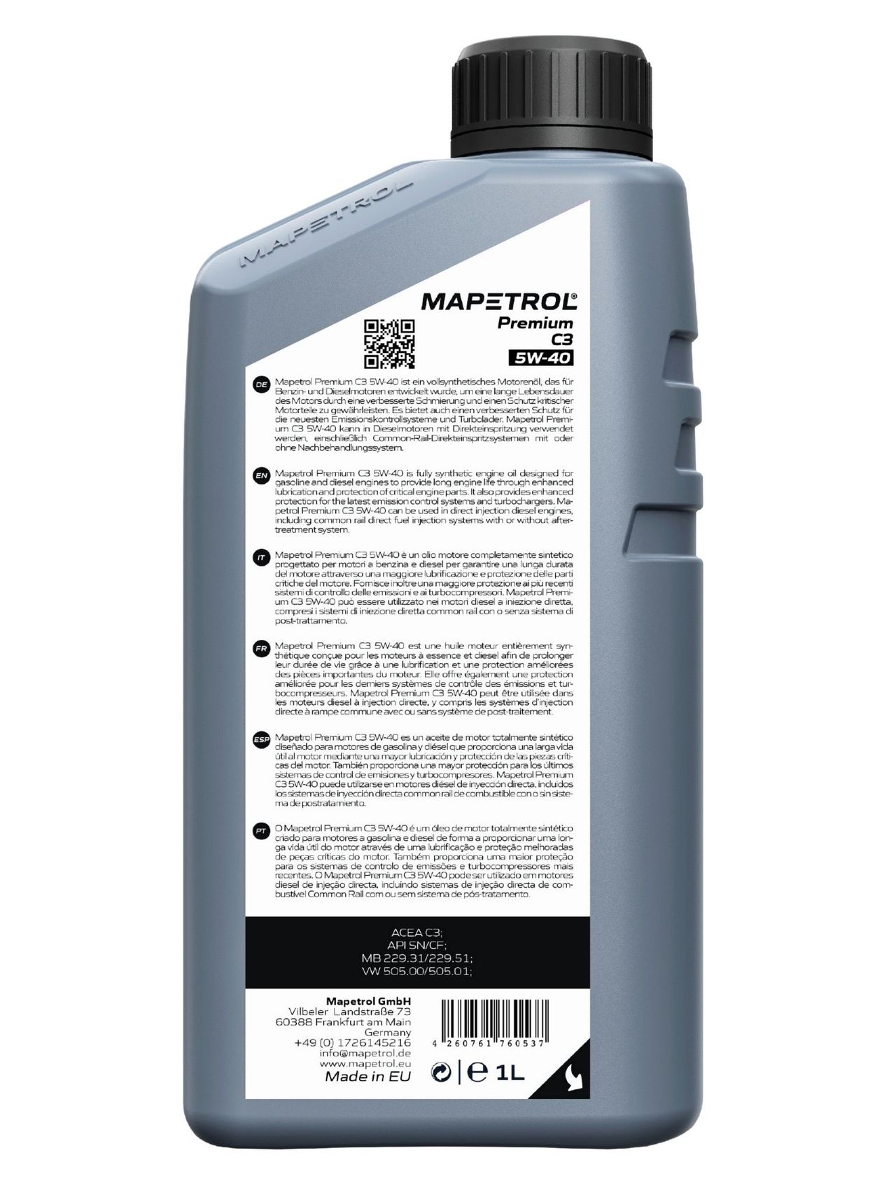 Produktinformationen "Mapetrol Premium C3 5W-40 1 Liter"